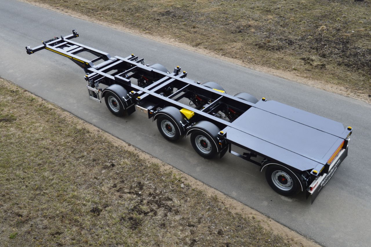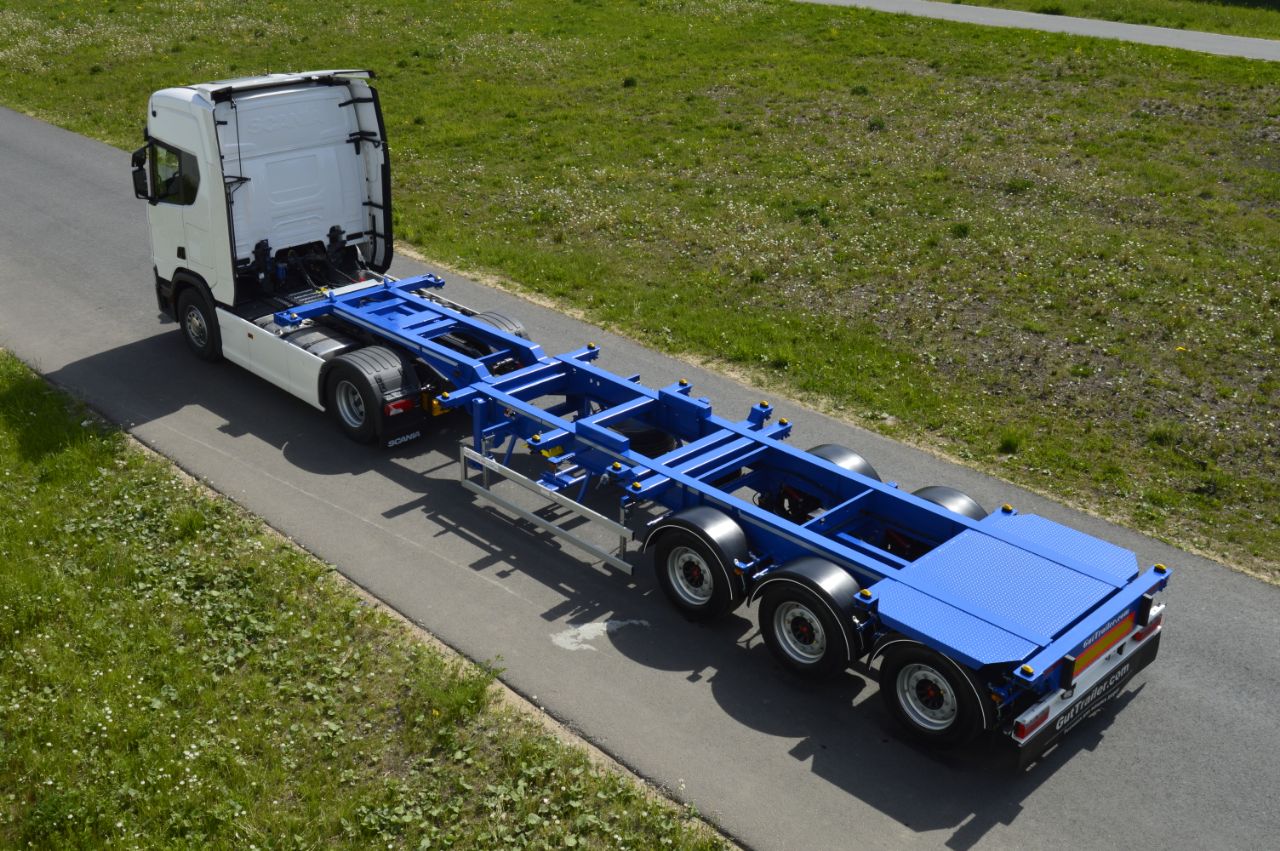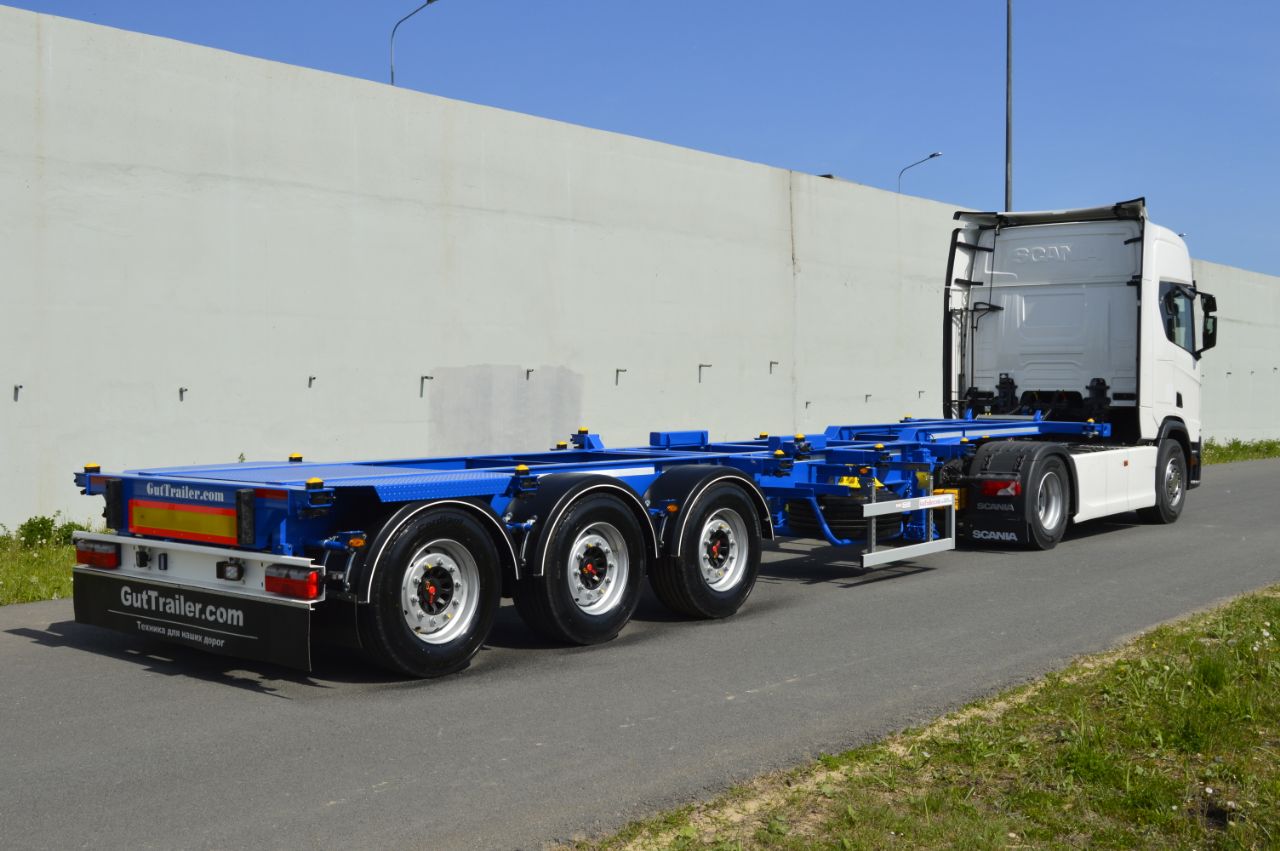 Компания ООО «ГУТ ТРЕЙЛЕР» производит различные модификации контейнеровозных полуприцепов (как для перевозки стандартных 20′, 30′, 40′, 45′, 45HC контейнеров, так и контейнеров для специальных задач). Выпускаемые нами изделия позволяют перевозить разнообразные грузы по магистральным направлениям и по закрытым логистическим терминалам.